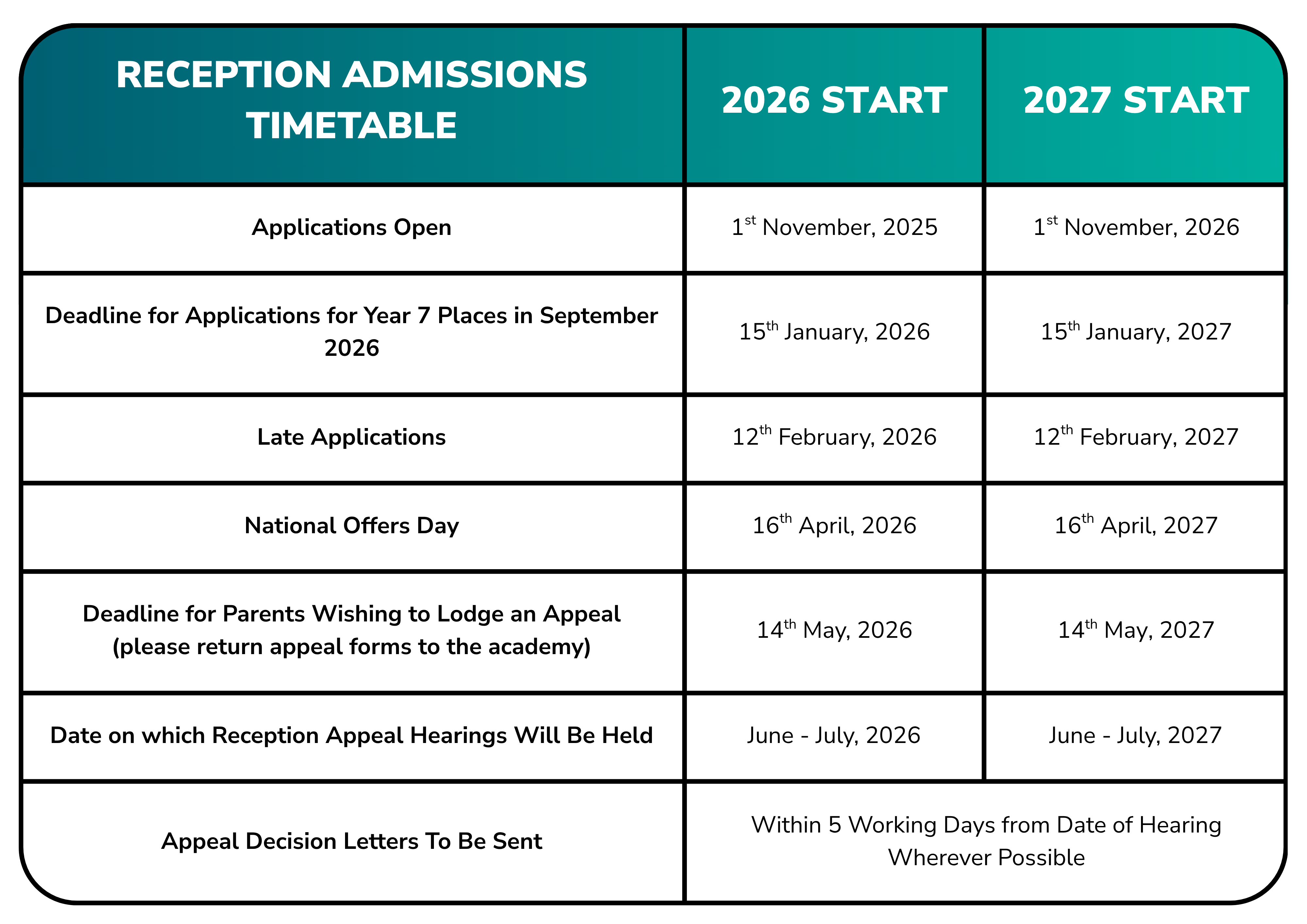 The school’s admission authority sets the admission policy every year. Although the BLP is the admissions authority, the school works with Leeds City Council’s Admissions Unit, which coordinates reception places at all schools in Leeds. You can read our school’s admission polices at the bottom of this page.